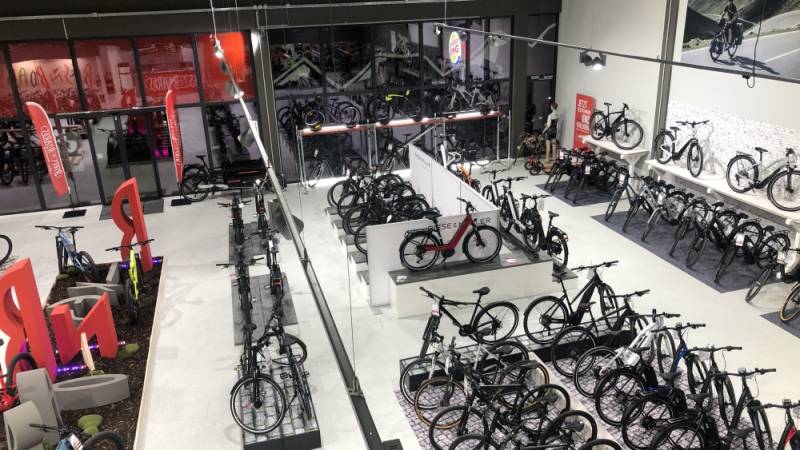 Mit einer Gesamtfläche von über 1.900qm und einer Verkaufsfläche von über 900qm ist der Store ein wirkliches Paradies für Radfahrer.