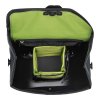 Wasserdichte Hinterradtasche (Einzeltasche) für E-Bikes mit Quick-Lock2.1 System; Taschendeckel mit magnetischem Verschluss; gepolstertes, herausnehmbares Fach für E-Bike (Unterrohr-)Akku; flexible Reißverschluss-Innentasche unter Deckel für E-Bike Display; mehrere Netzinnentaschen zur Organisation; flexible Netzaußentasche; formstabiler Taschenkörper, Tasche steht selbstständig; PU-beschichtetes Nylongewebe; abnehmbarer Tragegurt; Tragegriff; Reflektoren.